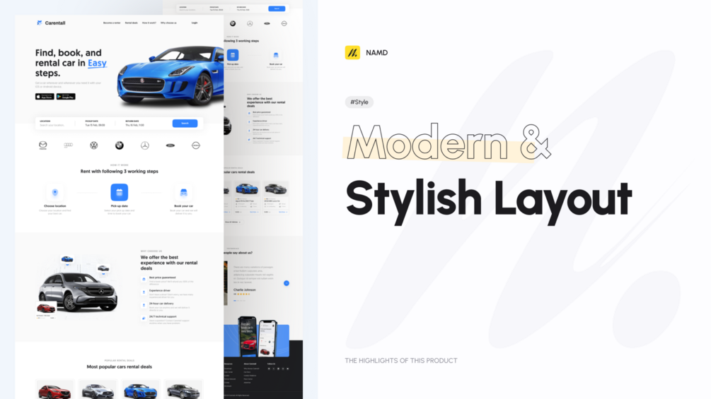 Rent Car Landing Page UI KIT